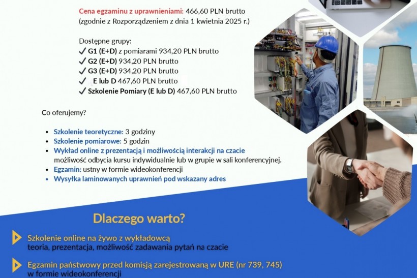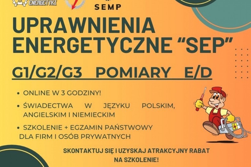 Odnowienie lub nabycie Uprawnień Energetycznych SEP G1/G2/G3 pomiary E/D,