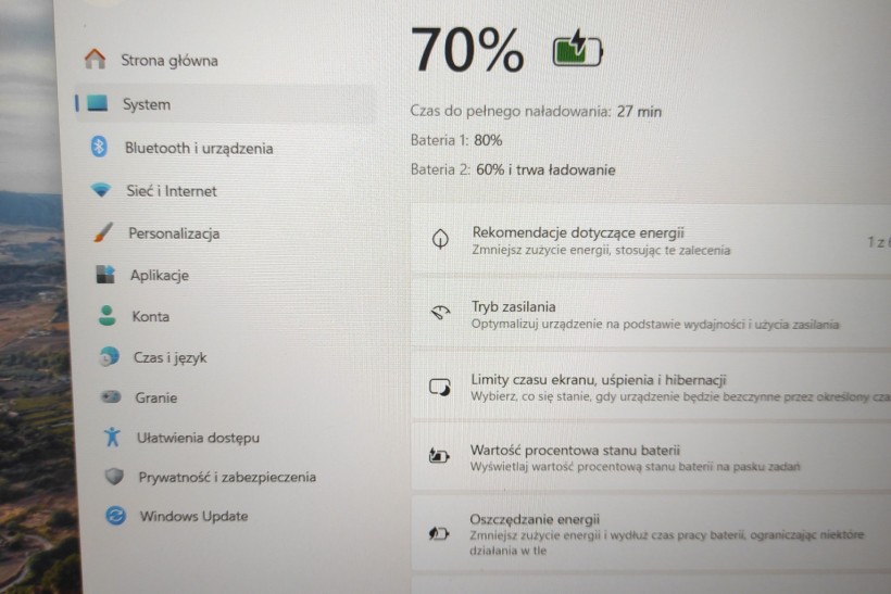Posiada 2 baterie, wewnętrzną (podłączoną do płyty głównej) oraz zewnętrzną