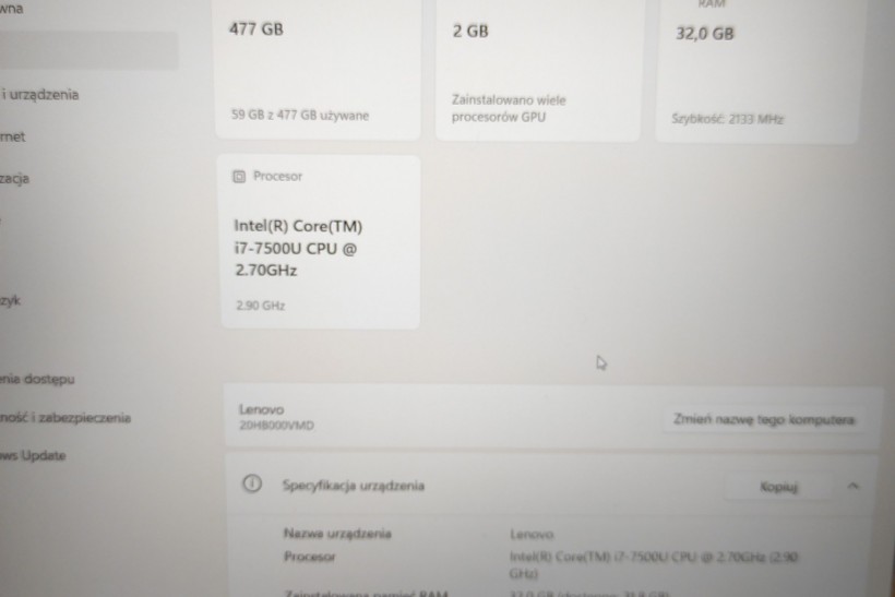Dysk SSD wymieniłem na nowy, posiada on pojemność 480GB