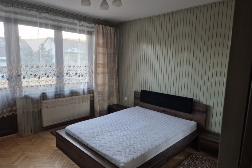 Wynajmę mieszkanie 80m2 w domu dwurodzinnym w spokojnej dzielnicy Myślenic, w pobliżu centrum. 3 pokoje, duża kuchnia, łazienka, spiżarnia oraz duży taras (25m2) od strony południowej. Mieszkanie jest nowocześnie umeblowane, wyposażone we wszystkie niezbędne sprzęty AGD (m.in. pralka, lodówka, zmywarka, piekarnik). W ogrodzie altanka, grill i miejsce parkingowe. Osobne liczniki. Oferta dla osób bez zwierząt. Umowa wynajmu okazjonalnego.