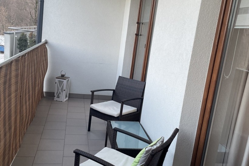 Mieszkanie znajduję się przy ul. Mostowej w Myślenicach. Bezpośrednio z mieszkania wyjście do parku na Zarabiu. Budynek zamykany bramą na pilota.