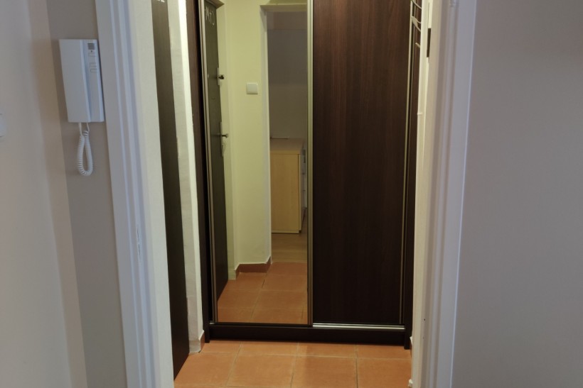 Mieszkanie składa się z przedpokoju, łazienki, kuchni oraz dużego pokoju.