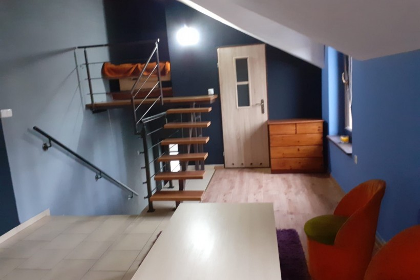 Lokal znajduje się na pierwszym piętrze ma osobne wejście. Mieszkanie składa się z jednego pomieszczenia oraz antresoli