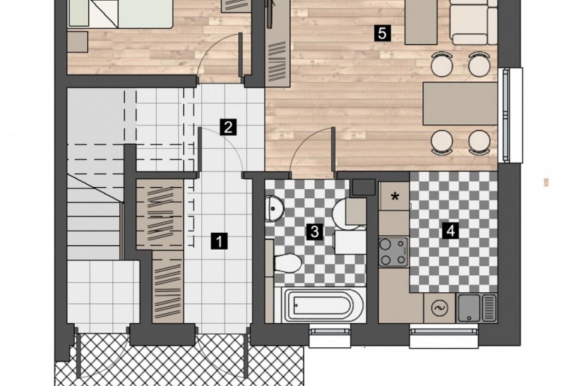 Lokal mieszkalny o pow. 50,77 m² znajdujący się na parterze budynku, składa się z salonu z aneksem kuchennym, łazienki oraz sypialni- funkcjonalny układ to tylko jedna z wielu zalet tej nieruchomości. Do lokalu przynależą także duży taras o pow. 18,8 m² i mały ogródek - idealne miejsca do spędzania długich letnich wieczorów.
