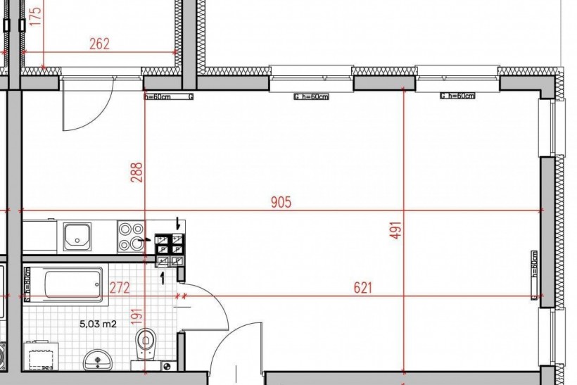 Mieszkanie w stanie deweloperskim, bardzo jasne składające się salonu z aneksem kuchennym i łazienki z toaletą o łącznej powierzchni 42,12m2.