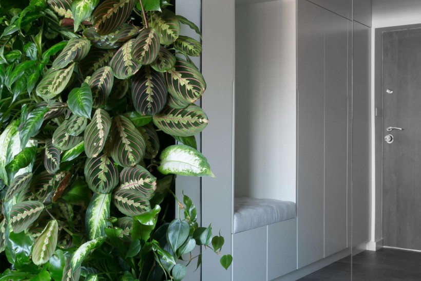 Duży przedpokój – reprezentacyjne wejście do mieszkania z miejscem na zmianę obuwia i szafy wykonane na wymiar, dzięki czemu wnętrze pozostaje uporządkowane i estetyczne.
