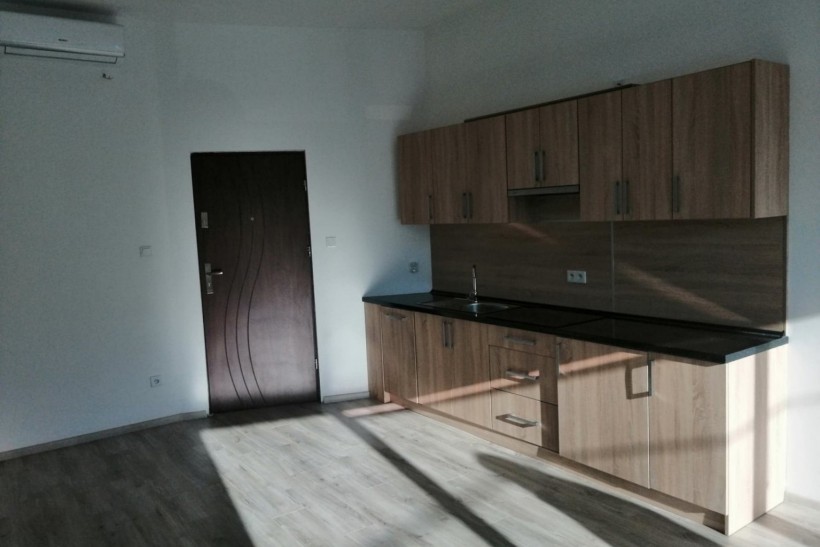 Układ: sypialnia + salon z aneksem kuchennym, łazienka. Mieszkanie jasne i słoneczne (ekspozycja południowa), salon z dużymi oknami. Wyposażone w klimatyzację. Gotowe do zamieszkania. Ogrzewanie elektryczne.