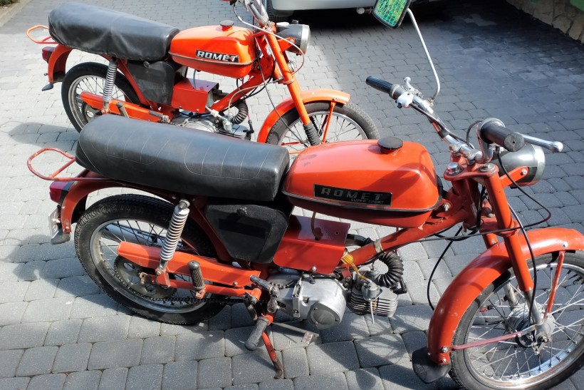 Witam sprzedam dwa romety ogary widoczne na zdjęciach. Oba na chodzie. Jeden zarejestrowany z przeglądem ubezpieczeniem 85r, do jakiś poprawek wizualnych mechanicznych. Drugi ogar bez dok. Na "części". Cena za pierwszego 4200 zł. Cena za drugiego. 2100 zł. W pakiecie na pewno taniej.