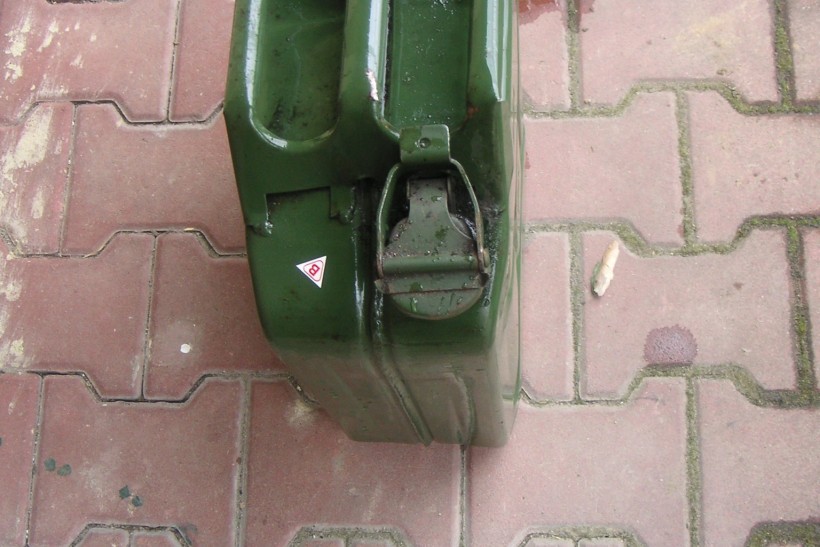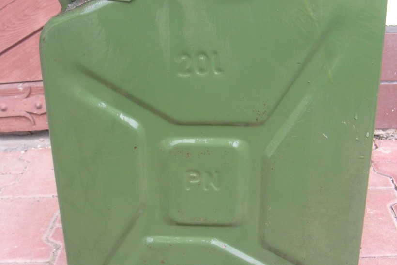 Stalowy kanister na paliwo 20 litrów z Wojska Polskiego. Szczelne zamknięcie, rączka do przenoszenia. Szczelny.