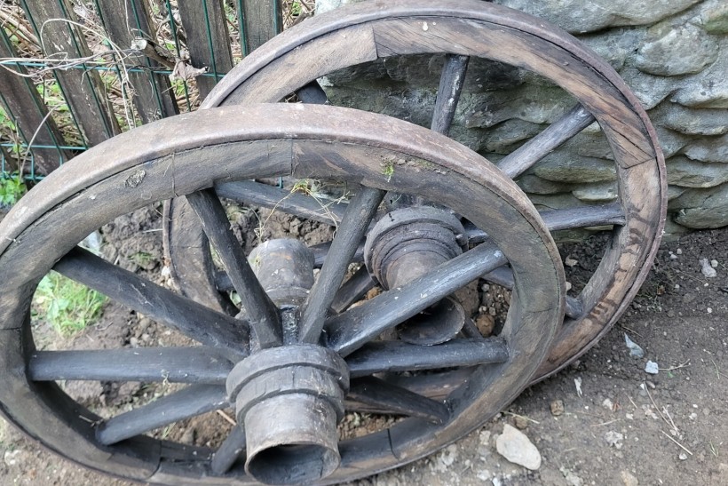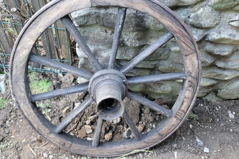 Witam. Posiadam na sprzedaż 3 koła do wozu. 2 koła maja 77 cm wysokości, 5 cm szer., piasta ma 11cm szer., drewniana szprycha 24cm. Stan żeliwa i drzewa użytego oceniam jako bardzo dobry