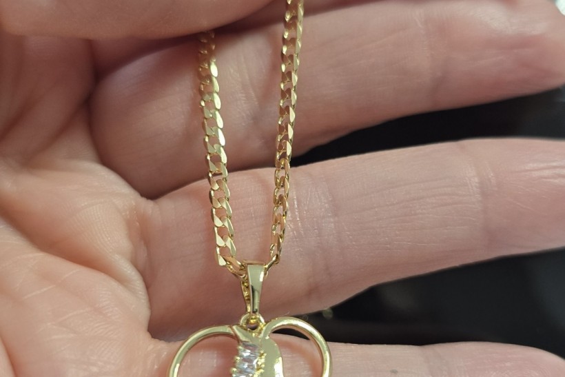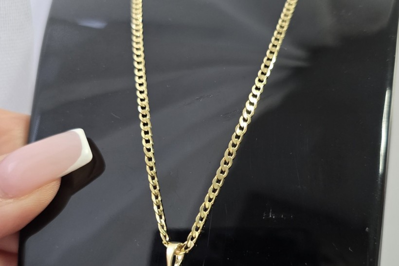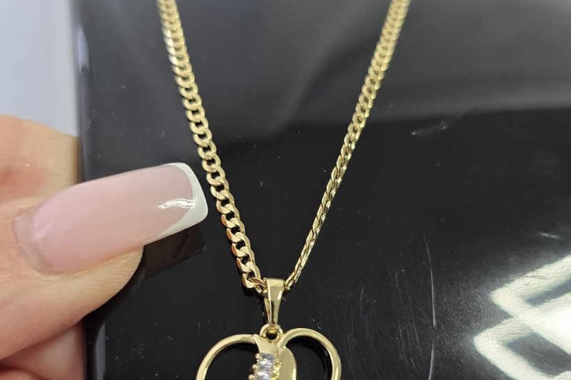 Śliczny komplecik łańcuszek 45cm z zawieszką, dziewczynka z wianuszkiem z cyrkonii, kolor złoty.