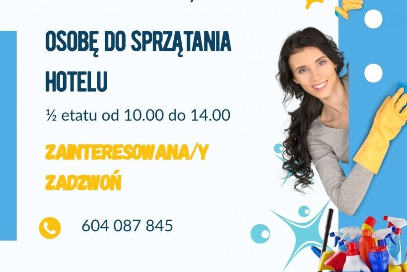 Poszukujemy osoby do sprzątania hotelu- praca na 1/2 etatu.
