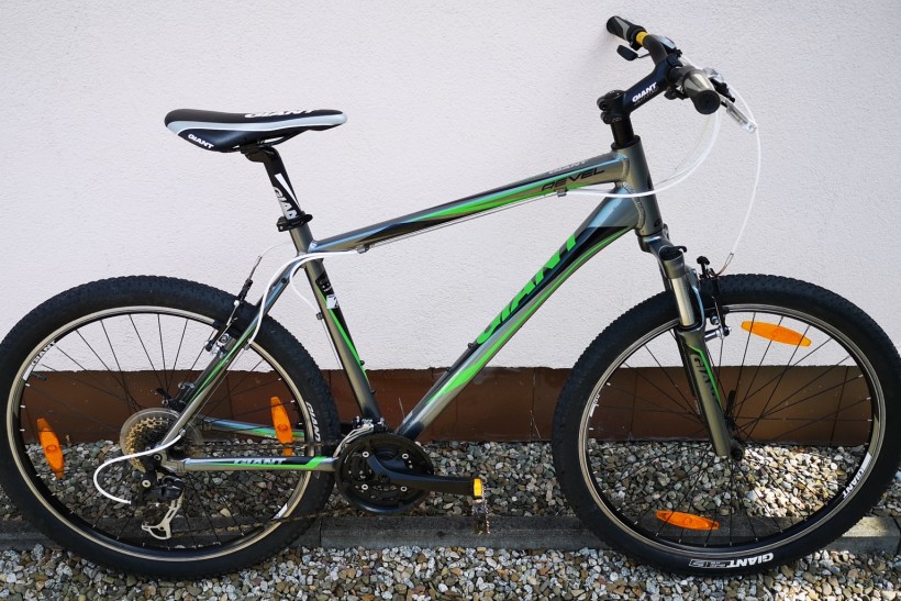 Przedmiotem sprzedaży jest wysokiej jakości rower górski Giant Revel 2 z lekką aluminiową ramą męską w rozmiarze L ( pasuje do wzrostu 175-185 cm), postawiony na 26 calowych kołach MTB, w metalicznym bardzo ładnym grafitowym kolorze i zielonymi oryginalnymi oklejeniem.