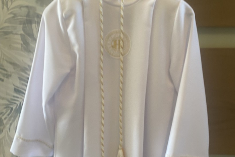 Sprzedam strój komunijny jak nowy biały chłopiec wymiary Od pachy do pachy 52 szerokość na dole 60 ,długość 64 całkowita od pachy w dół 43. Spodnie pas 31 po naciśnięciu jakieś 35 na gumce są ,długość całkowita 84 od kroku 61 możliwość wydłużenia bądź skrócenia bardzo dobry stan