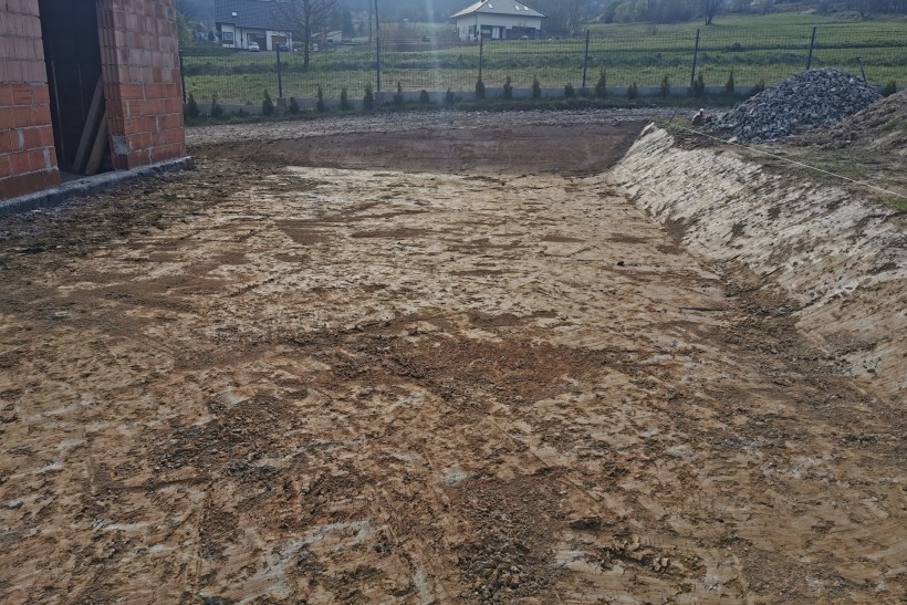 Plantowanie, niwelacje terenu, wykopy pod ławy stopy murki ogrodzenia itp., sprzątanie działek, przygotowania pod budowy, i innego rodzaju prace związane z wykopami oraz wyburzenia młotem hydraulicznym.