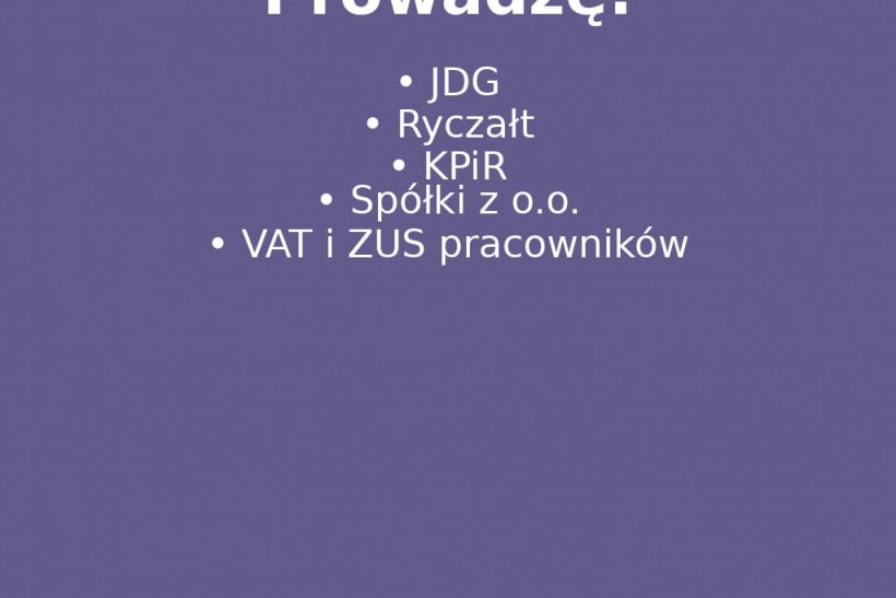 Księgowa| KPIR| Ryczałt| Spółka zo.o| VAT| ZUS | Założenie Firmy | JDG