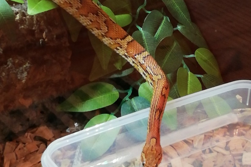 Wąż Zbożowy , samiec, odmiany Aztec .W pełni zdrowy ok 110 cm Karmiony mrożonkami lub świeżo ubitymi szczurami .Swobodnie da się brać na ręce.nieagresywny